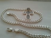Цепь заказывала шириной 8 мм, длина 60 см. И крестик.
